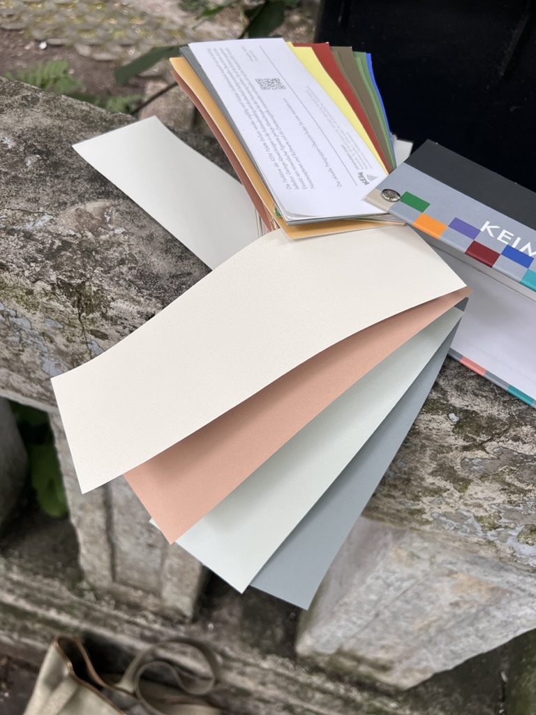 Das Farbkonzept wurde mit mineralischen Farben erstellt und hebt die unterscheidlichen Bauteile der Stilfassade anhand feiner Nuancierungen hervor, so dass insbesondere das Licht- und Schattenspiel der Fläche im Vordergrund steht.